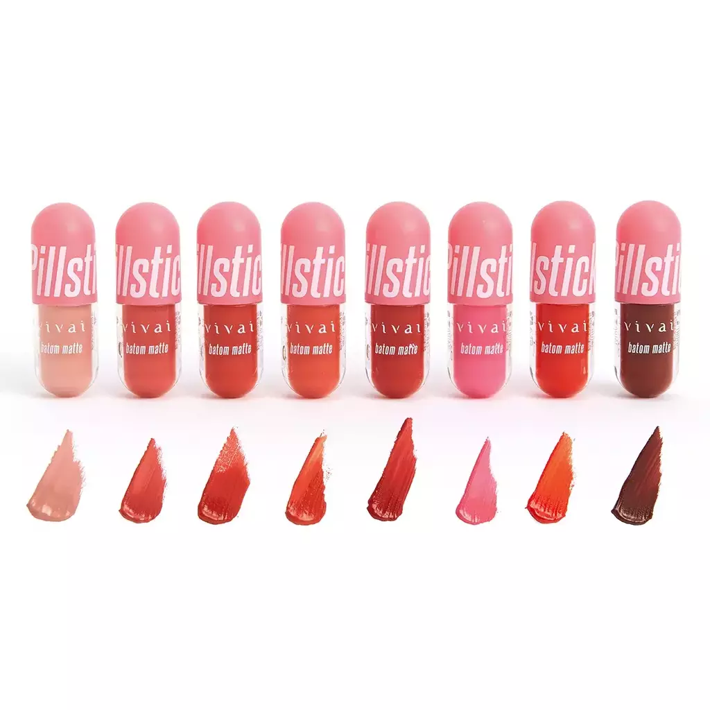 Transforme seu visual com o Batom Matte em formato de cápsula, um item criativo e moderno que une estilo, praticidade e cores intensas.