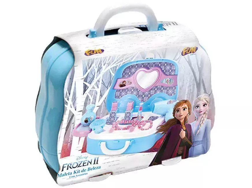 Brincar é uma das maneiras mais naturais e divertidas de formar conhecimento. É por meio das brincadeiras que a criança emerge no processo de aprendizagem, facilitando a construção da autonomia, reflexão e criatividade. Dessa forma, a criança se desenvolve integralmente, abrangendo os âmbitos sociais, afetivos, culturais, cognitivos, emocionais e físicos. Portanto, as brincadeiras são vitais para o desenvolvimento infantil. Fique ainda mais bonita junto com a Ana e a Elsa, do desenho animado Frozen, da Disney! Basta abrir sua Maleta Beleza com Acessórios Frozen da Fun que um completo kit beauty estará na sua frente em segundos. Secador de cabelos, escova, esmalte, perfume e batom! Tudo pronto...Ops! Não esqueça seus lindos acessórios como colar, pulseira e anéis para sair arrasando por aí! A maleta também conta com rodinhas de verdade para você levar e montar seu dia de beleza onde quiser! Esse kit salão de beleza de brinquedo acompanha 12 peças.