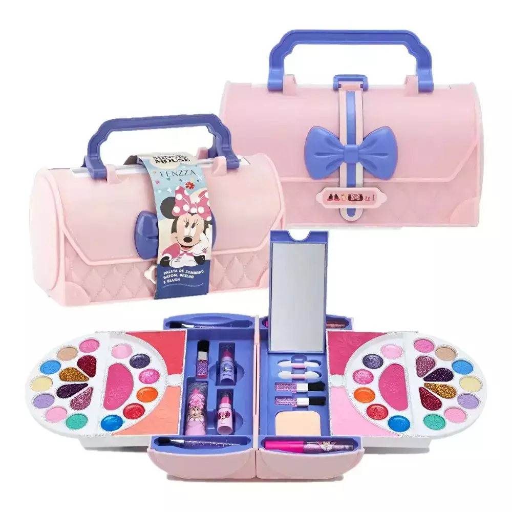 Maleta de Maquiagem Infantil Sombras Batom, Brilho e Blush Disney Minnie Fenzza
